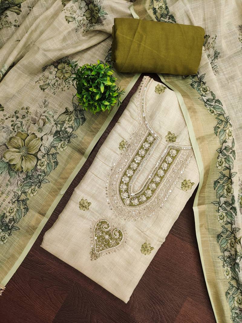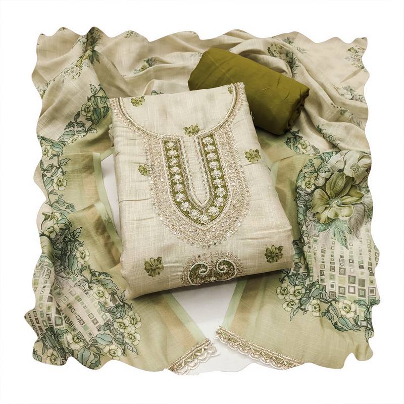 Off white color smart and elegant lilen cotton salwar kameez unstitched
