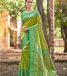 Olive color kanjivaram silk blend ethnic fancy meenakari designer saree