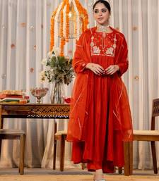 Orange color beautiful partywear kurta set with dupatta for stylish looks