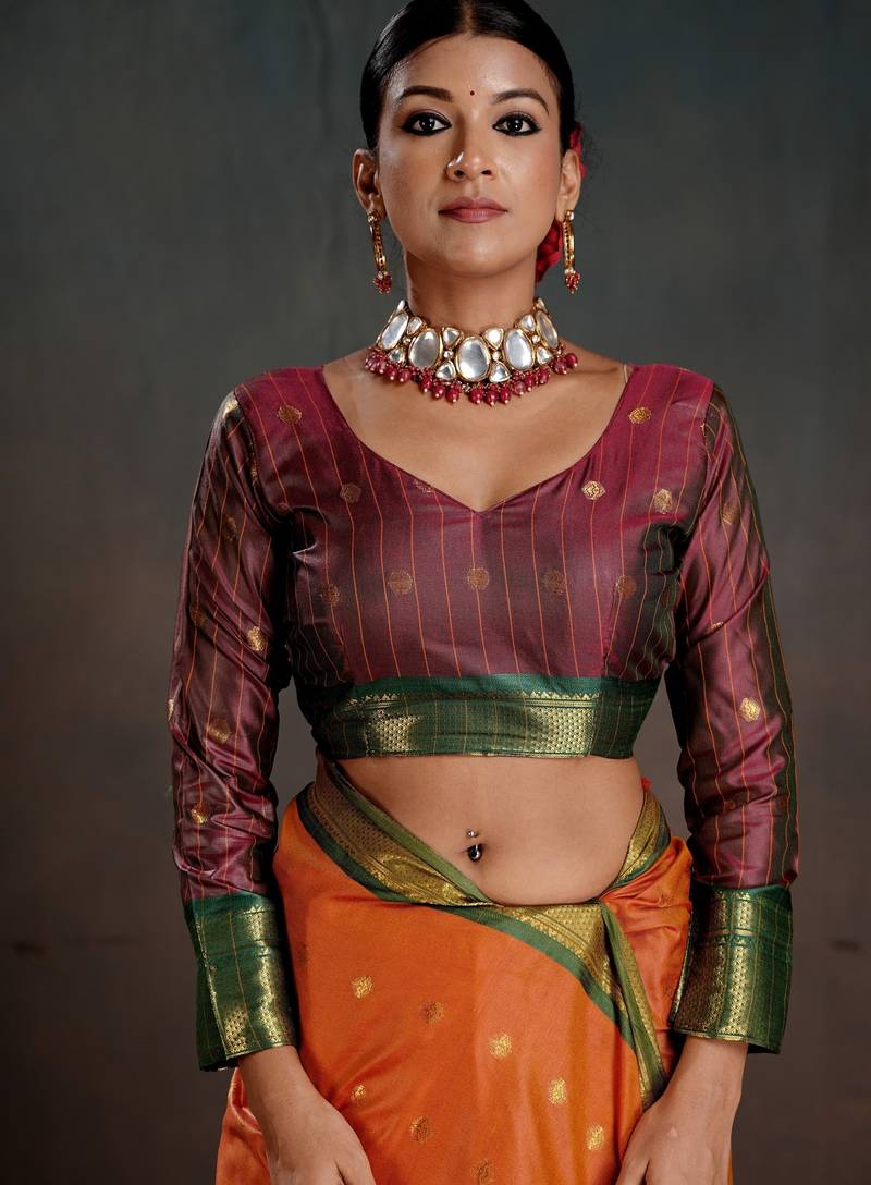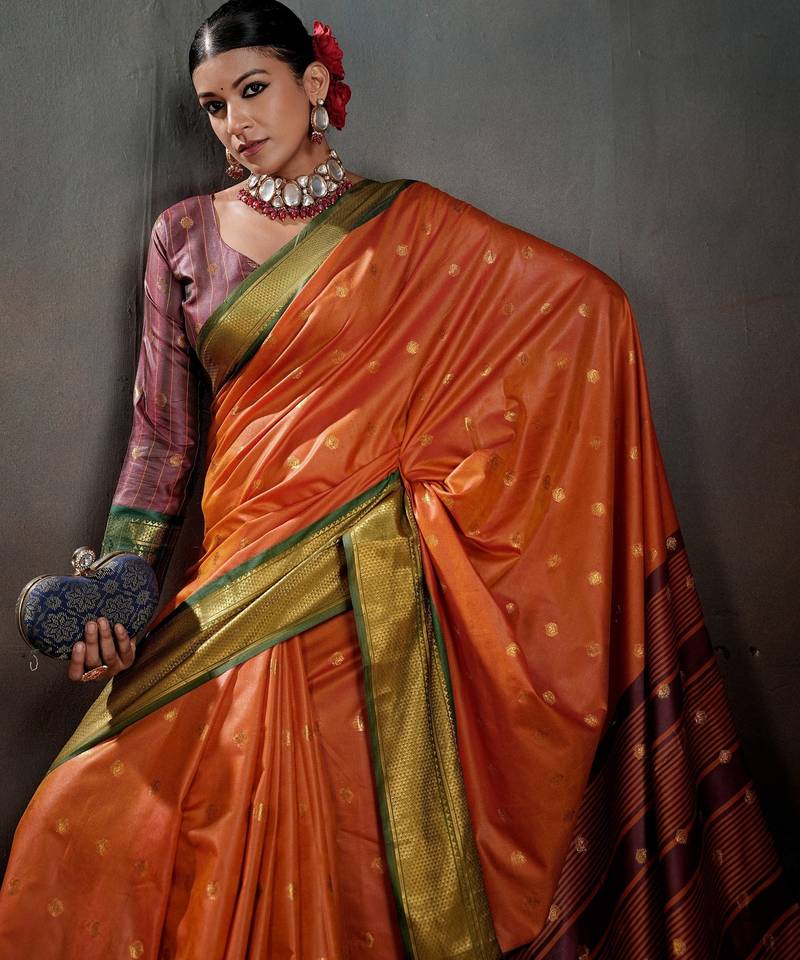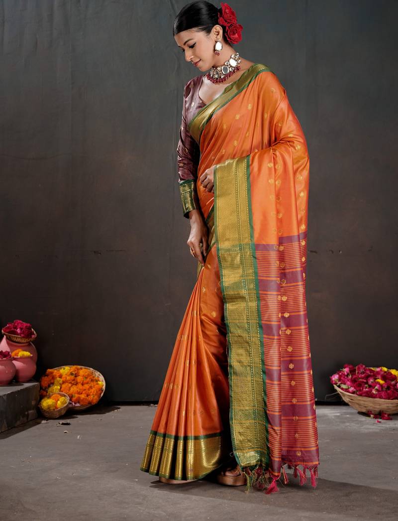 | Product Name | Orange Color Graceful Art Silk Fabric Woven Jacquard Designer Saree | |