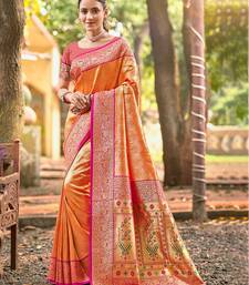 Orange color kanjivaram silk blend ethnic fancy meenakari designer saree