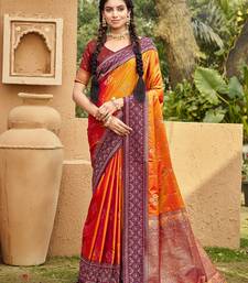 Orange color soft silk fabric woven designer ethnic ceremonial saree