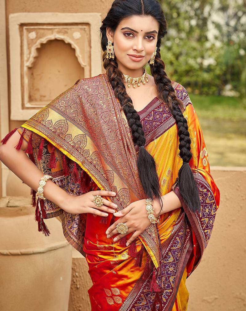 | Product Name | Orange Color Soft Silk Fabric Woven Designer Ethnic Ceremonial Saree | |