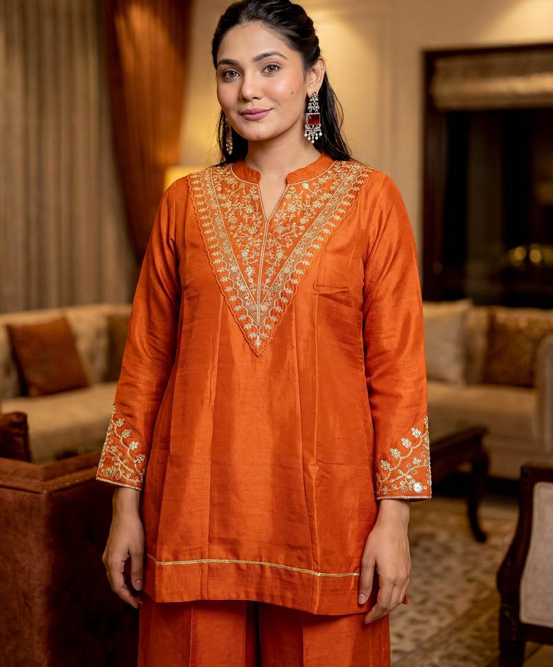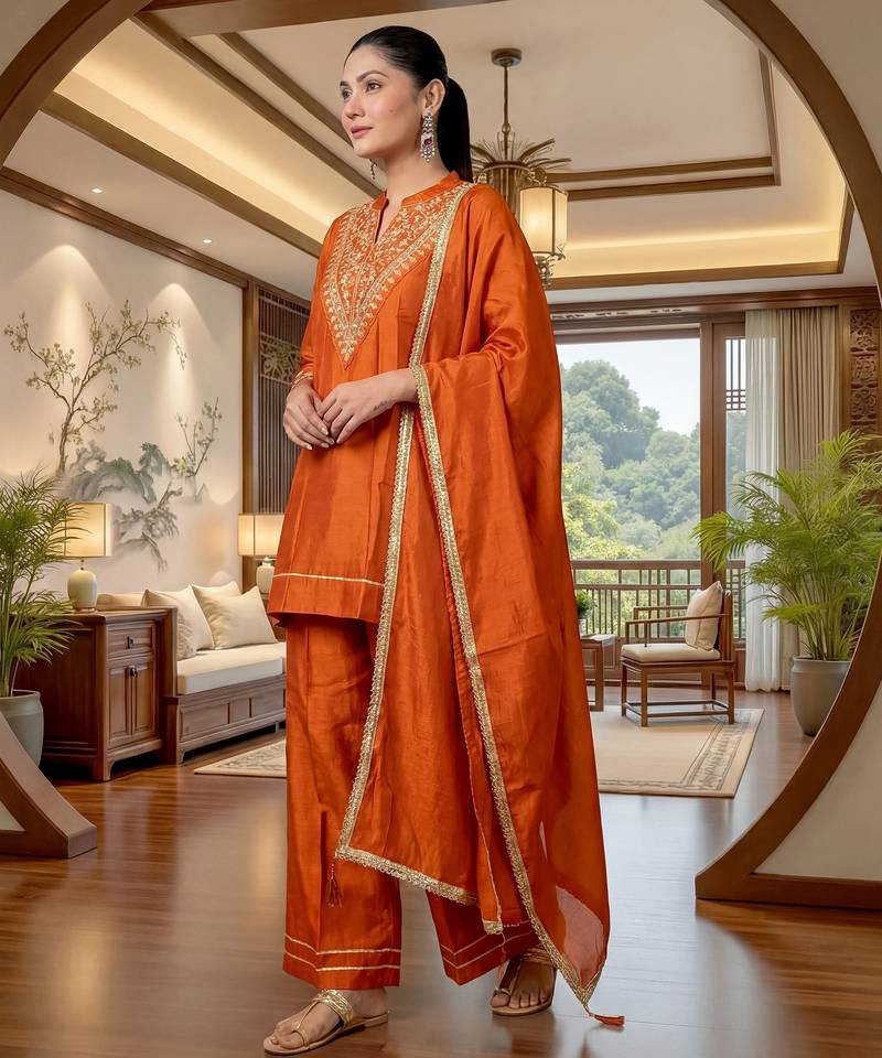 | Product Name | Orange Color Stylish Trendy Looking Designer Kurta Set For Stylish Looks | |