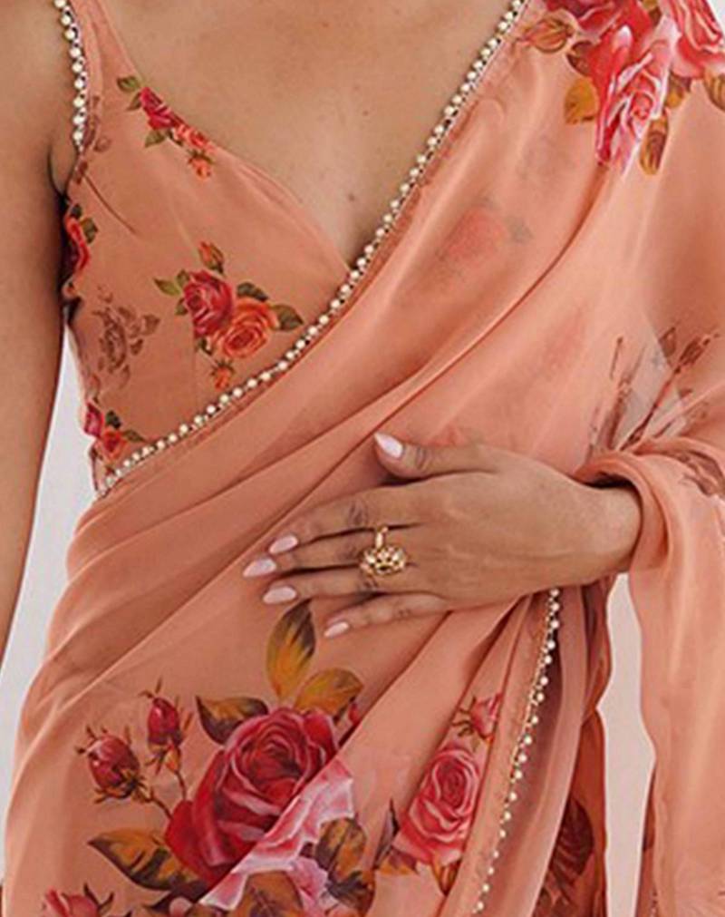 | Product Name | Peach Color Beautiful Floral Printed Ceremonial Georgette Saree | |