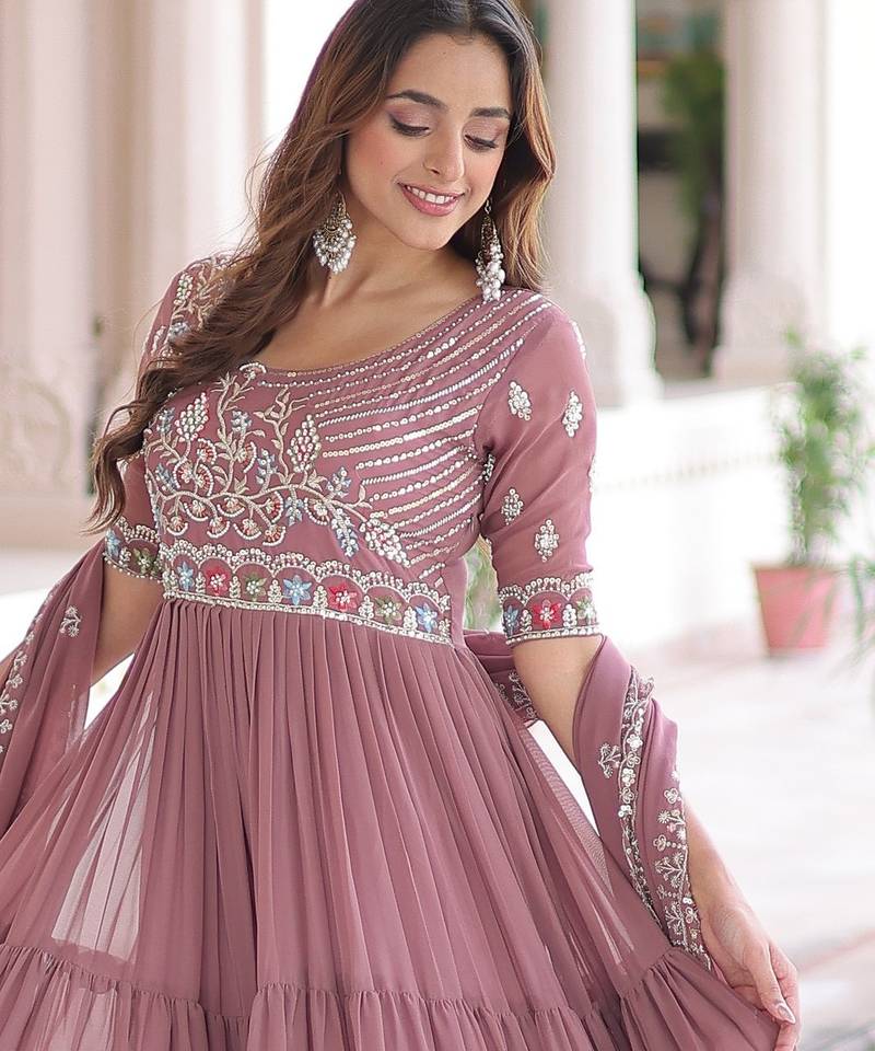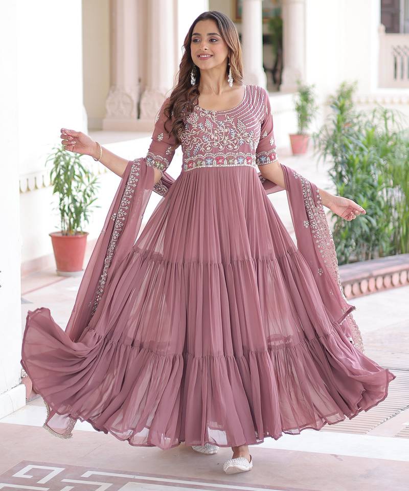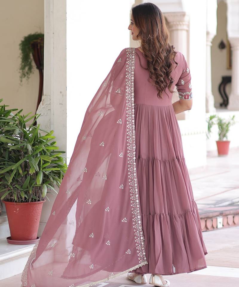 | Product Description | Attactive These Beautiful Looking Readymade Long Gown With Dupatta.These Gown And Dupatta Is Fabricated On Faux Georgette.Its Beautified With Designer Sequance Embroidery,Beads Work. |
