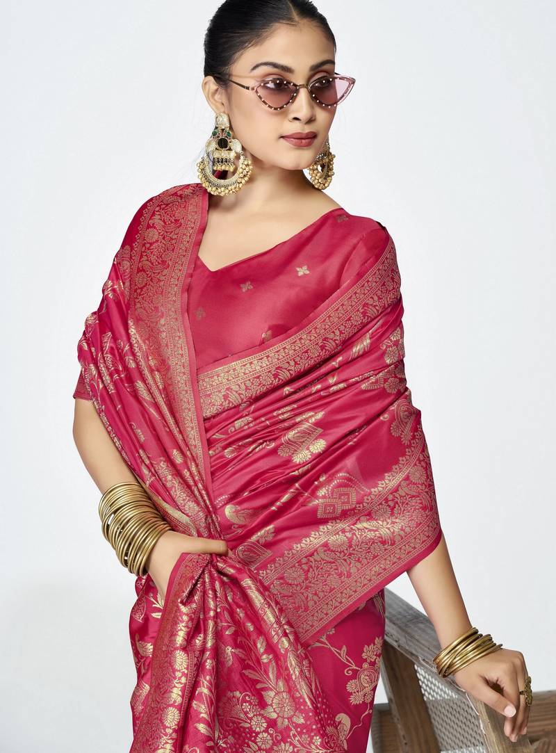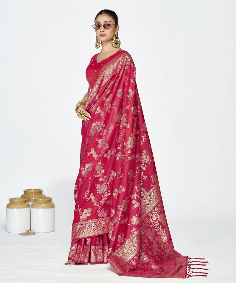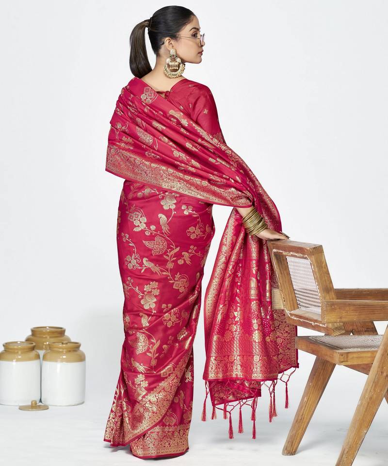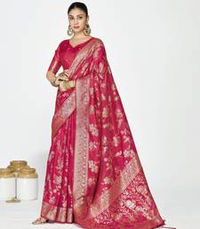 pink color banarasi art silk fabric  woven jari designer ceremonial partywear saree