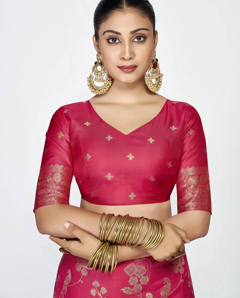 Product Name Pink Color Banarasi Art Silk Fabric Woven Jari Designer Ceremonial Partywear Saree