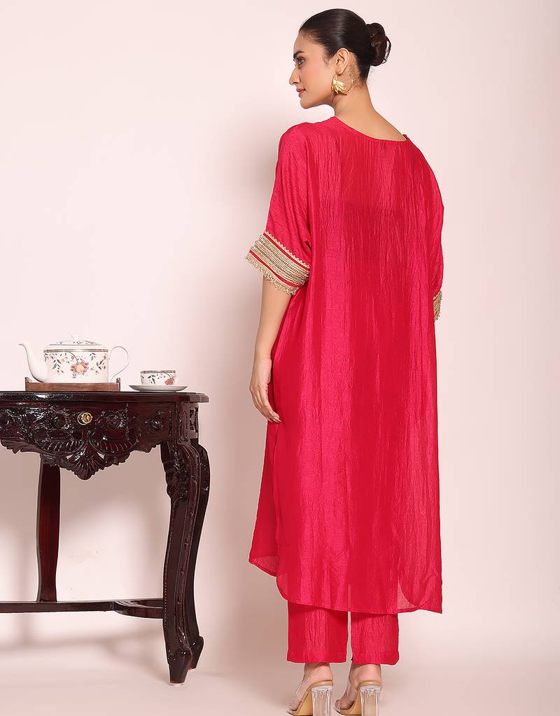 Pink color beautful poly silk fabric stylish partywear attire for girls