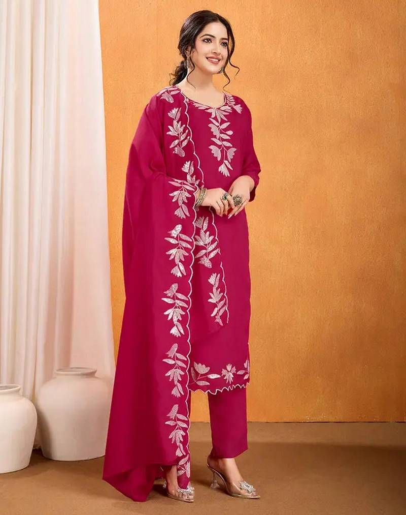 | Product Description | Garb These Suit In Fine Colored Pair With Bottom And Dupatta.These Top And Bottom Are Fabricated On Vichitra Silk Pair With Vichitra Silk Dupatta.Its Beautified With Designer Embroidery Work. |