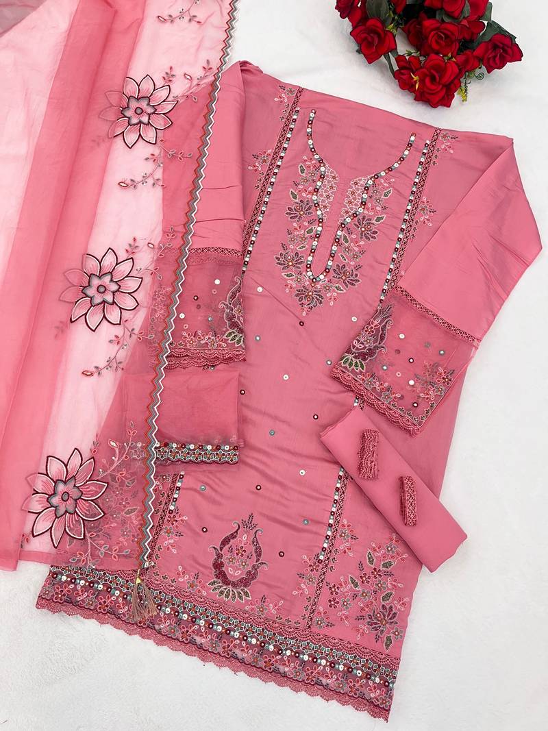 Pink color beautiful ethnic partywear designer embroidered suit unstitched