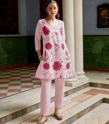 Pink color beautiful girlie chinon fabric embroidered kurta set