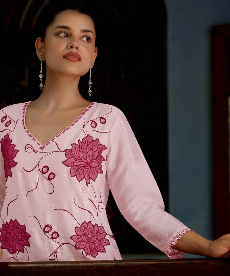 | Product Name | Pink Color Beautiful Girlie Chinon Fabric Embroidered Kurta Set | |