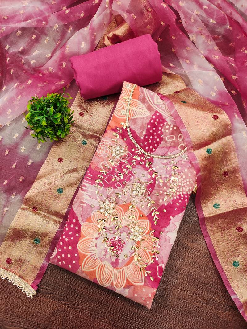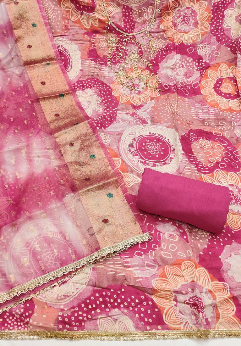 Pink color beautiful printed designer modal silk salwar suit unstitched