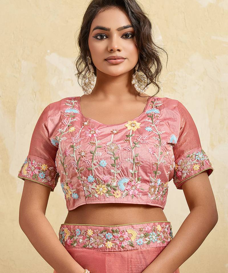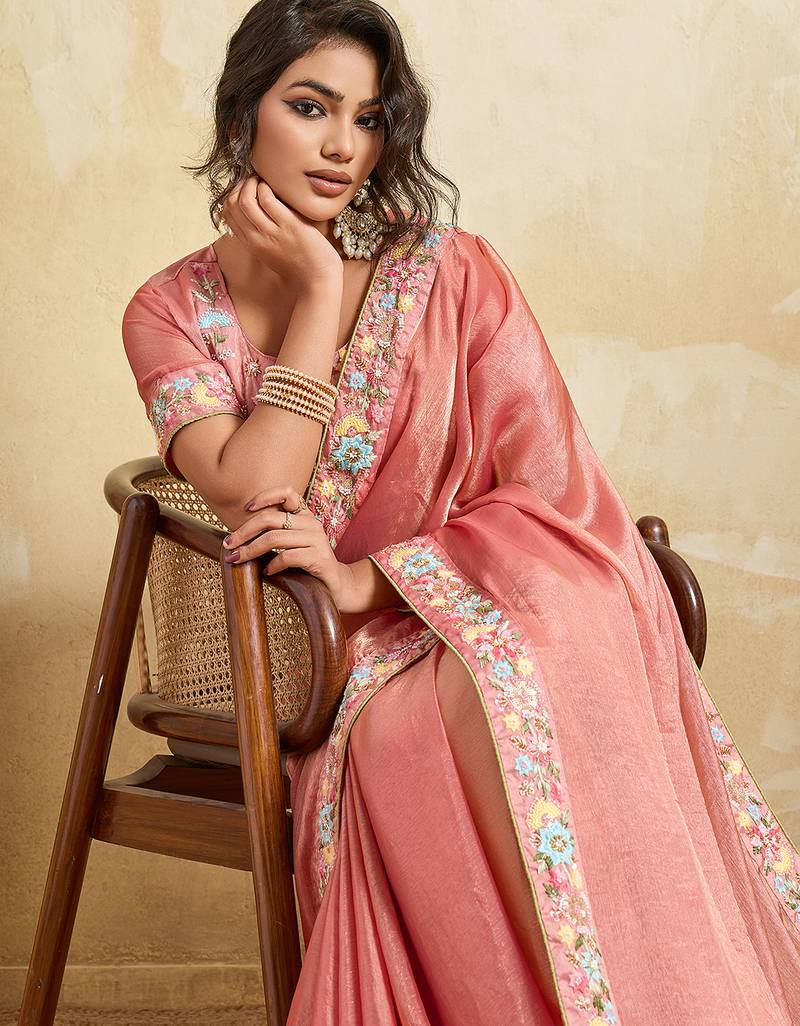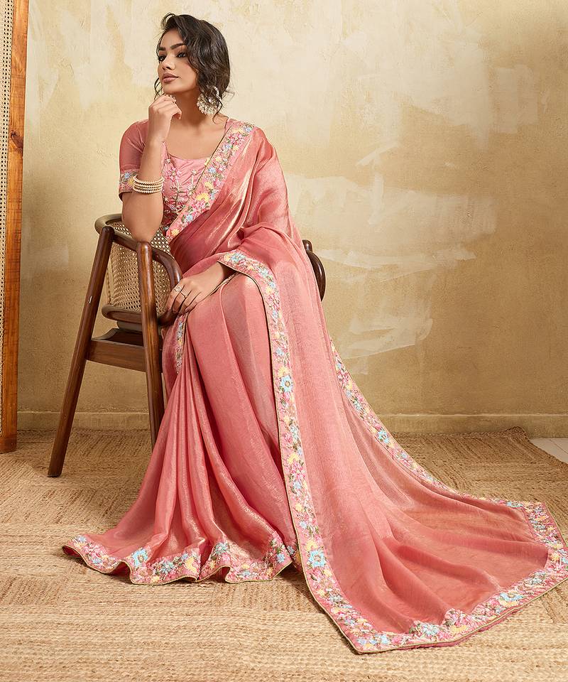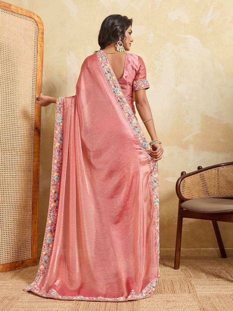 Pink color designer fendy chiffon fabric beautiful embroidered saree