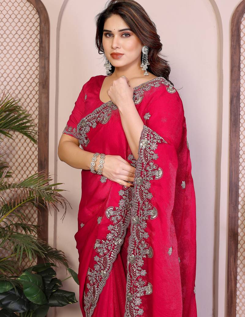 Maroon color designer fendy chiffon saree for classy bollywood looks