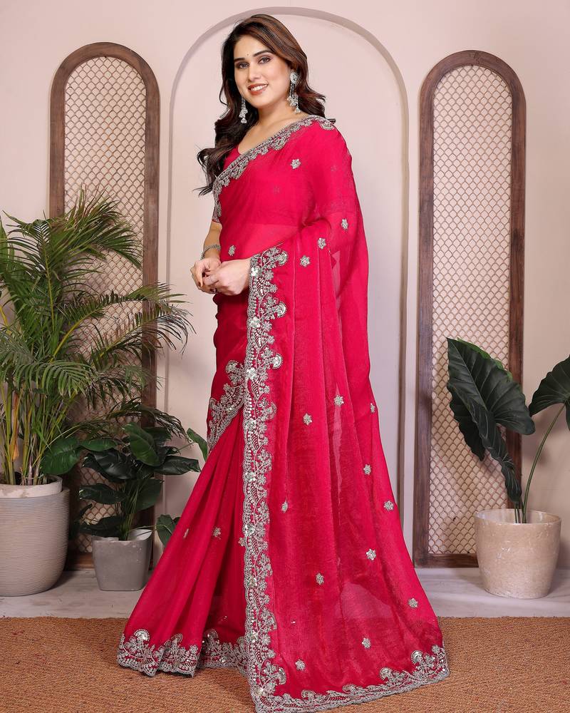 Product Name Pink Color Designer Fendy Chiffon Saree For Classy Bollywood Looks