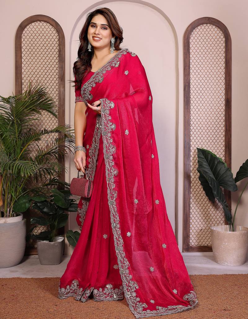 Pink color designer fendy chiffon saree for classy bollywood looks