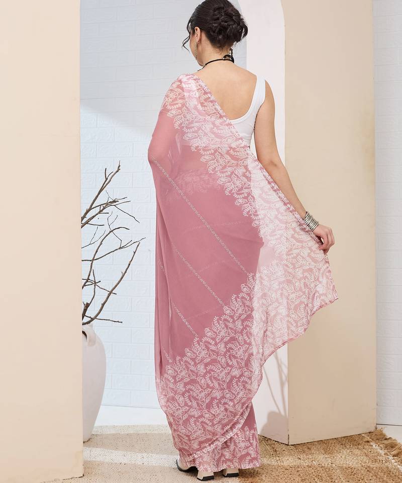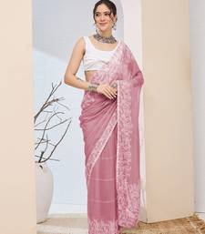 Pink color designer printed chiffon fabric ceremonial partywear saree