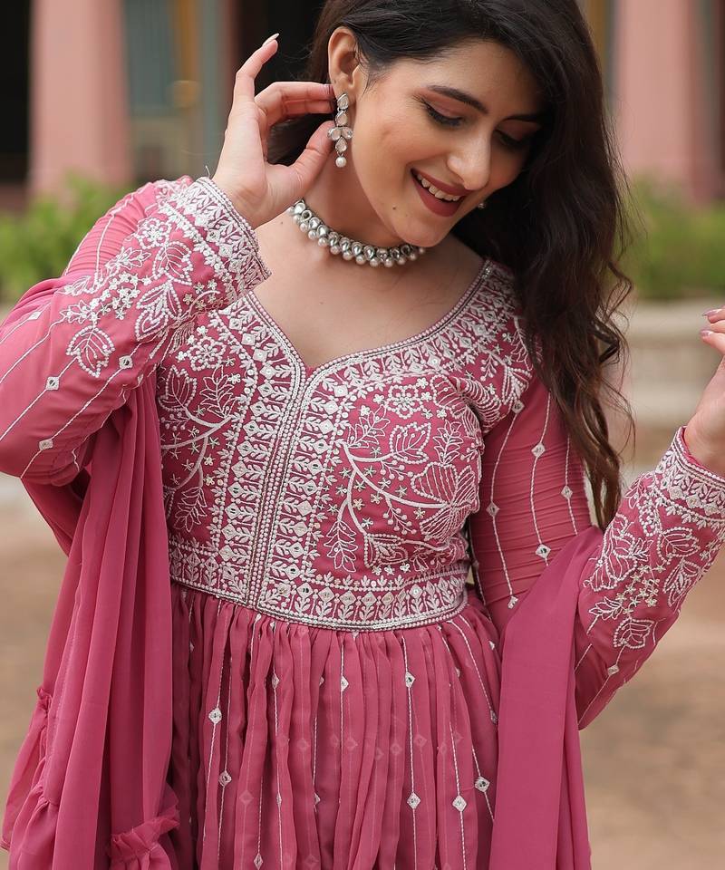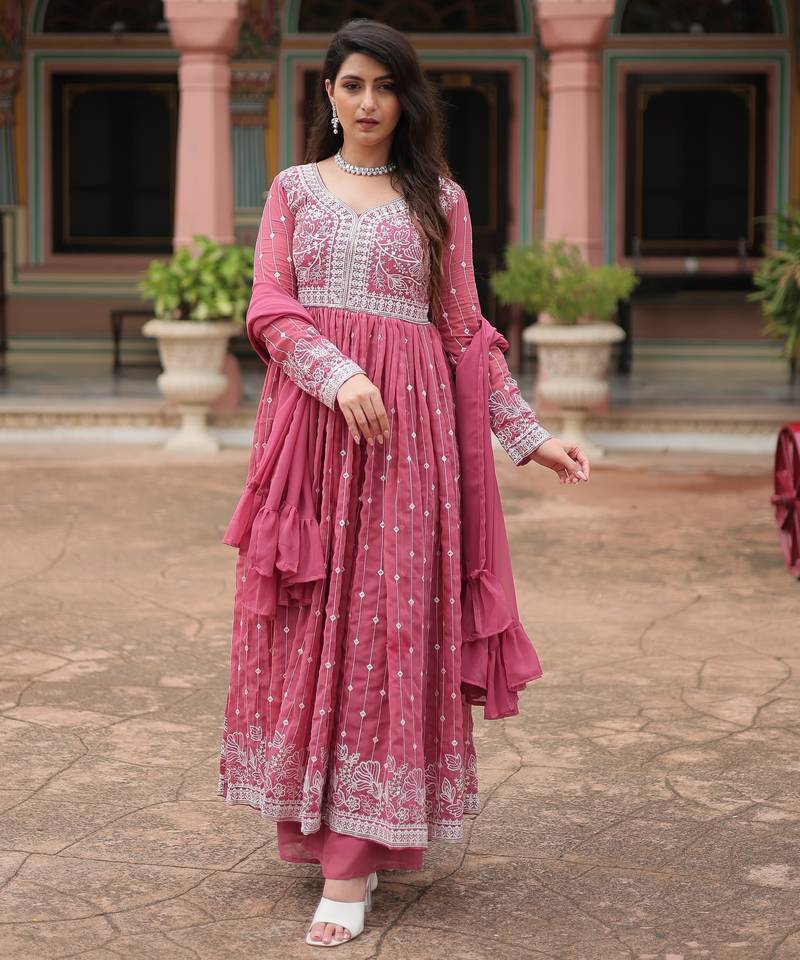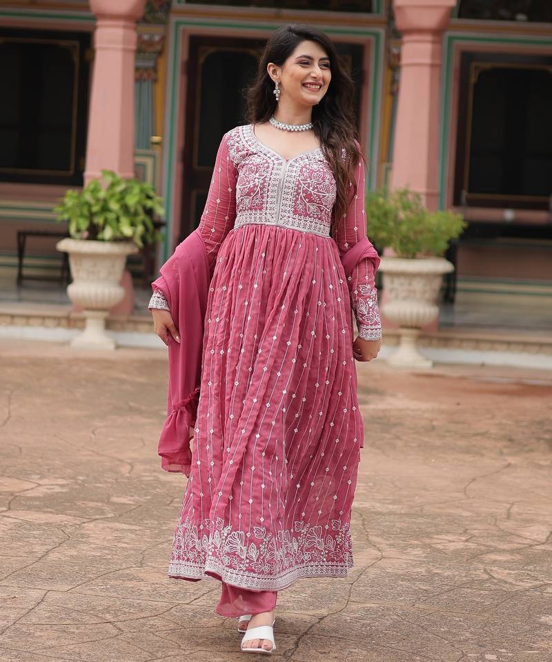 | Product Name | Pink Color Faux Georgette Fabric Beautiful Ceremonial Suit With Dupatta | |