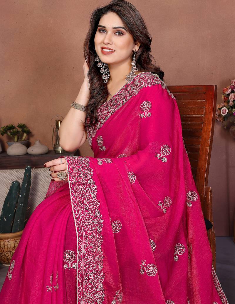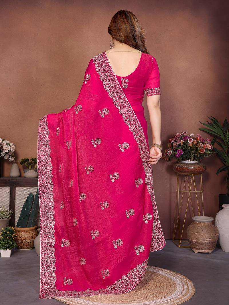 Pink color fendy chiffon fabric stylish bollywood style saree