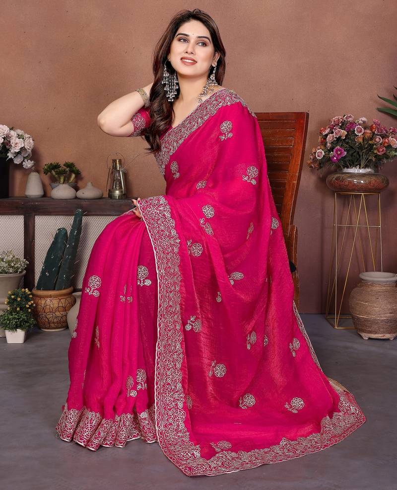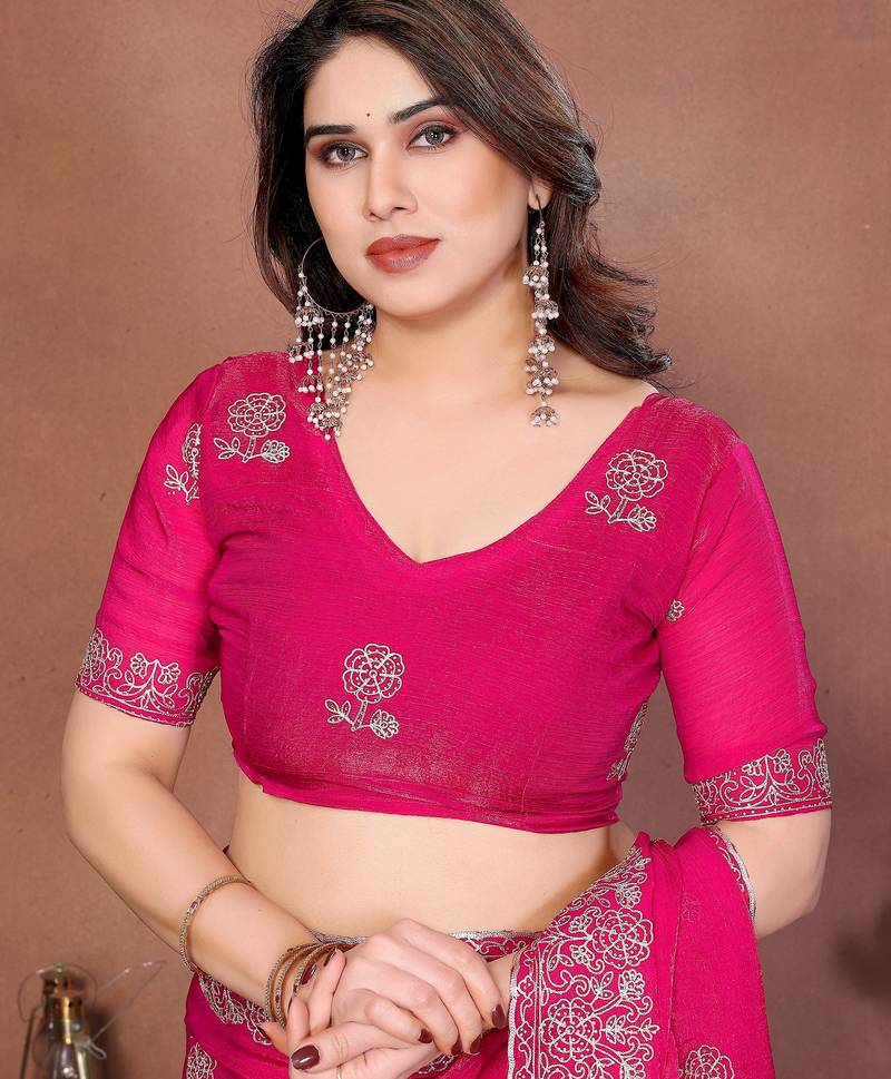 | Product Name | Pink Color Fendy Chiffon Fabric Stylish Bollywood Style Saree | |