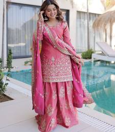 Pink color fendy crush fabric classy sequins embroidered partywear readymade suit with dupatta
