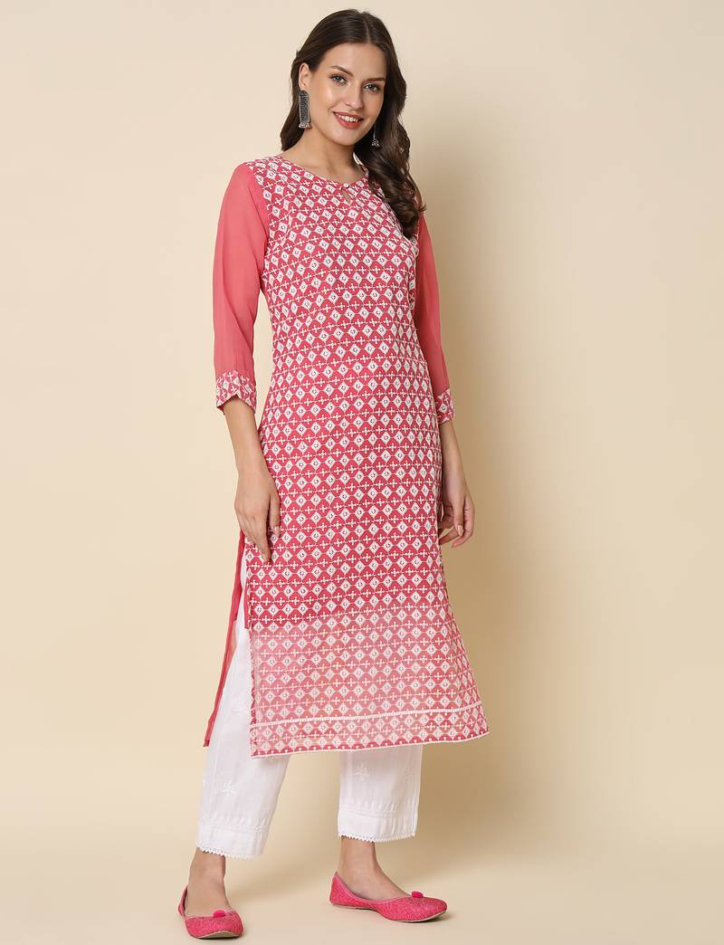 | Product Name | Pink Color Georgette Fabric Chikankari Work Formal Kurta For Girls | |