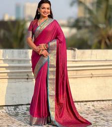 Pink color graceful soft silk fabric woven designer saree