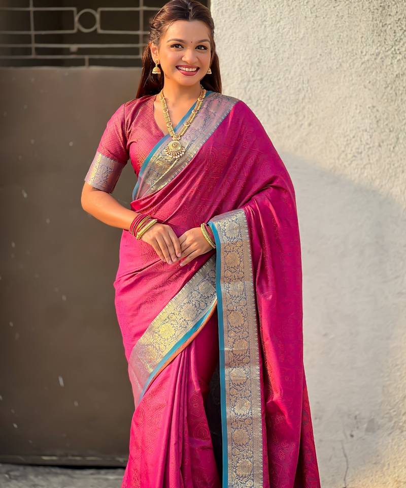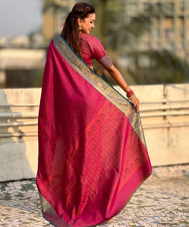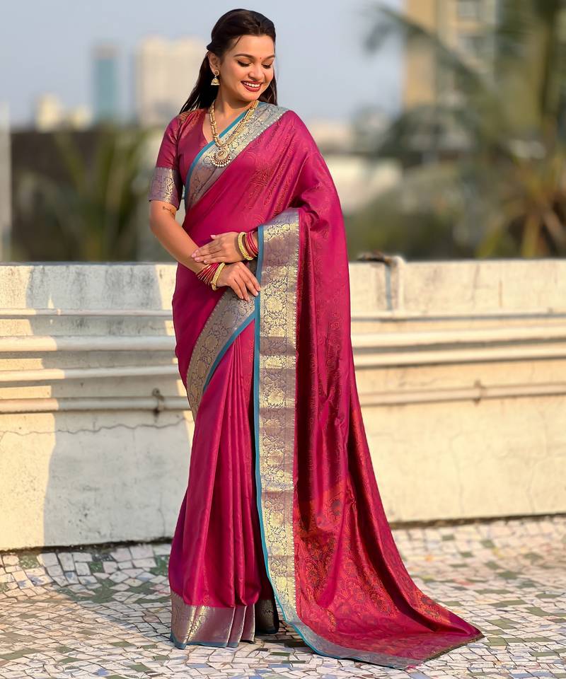 | Product Name | Pink Color Graceful Soft Silk Fabric Woven Designer Saree | |