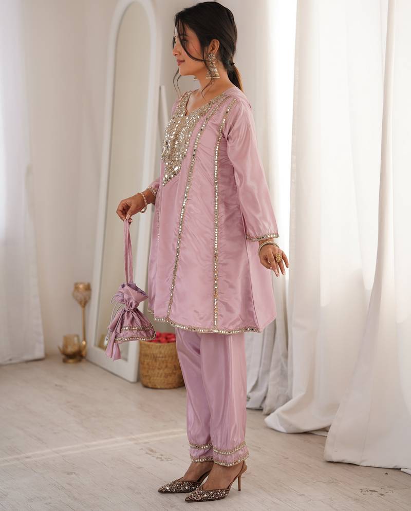 Pink color h o silk fabric beautiful fancy ceremonial attire