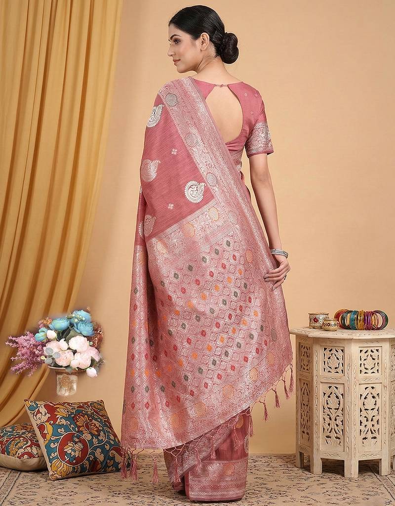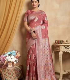 Pink color linen cotton fabric woven designer partywear saree