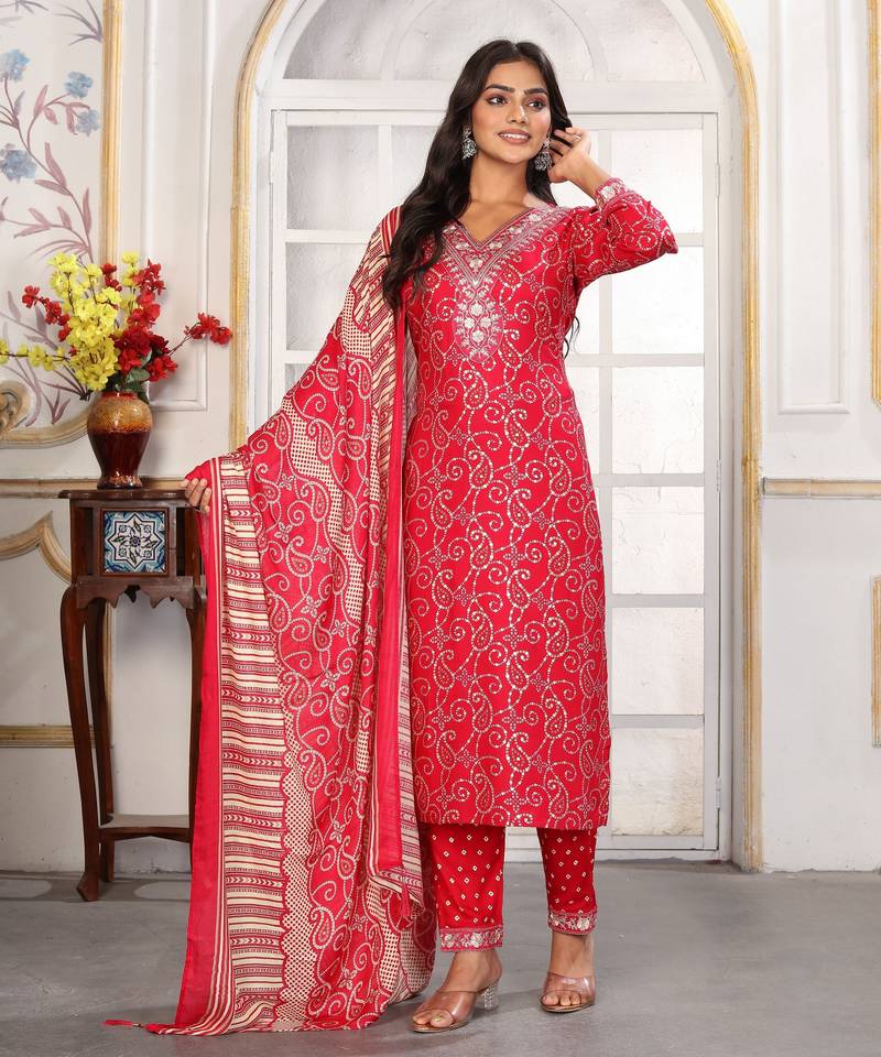 | Product Description | Garb These Beautiful Looking Readymade Suits.These Top And Bottom Are Rayon And Dupatta Are Rayon Fabricated.Its Beautified With Disigner Printed With Embroidery Work. |