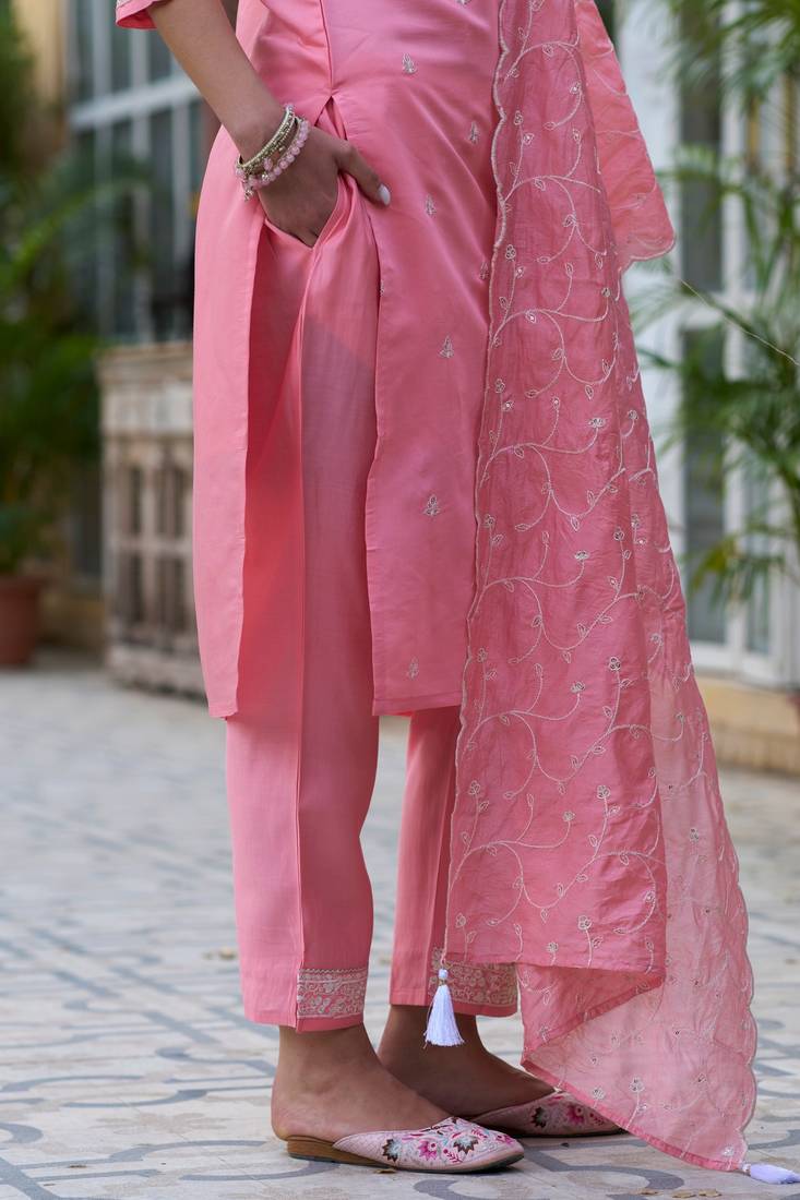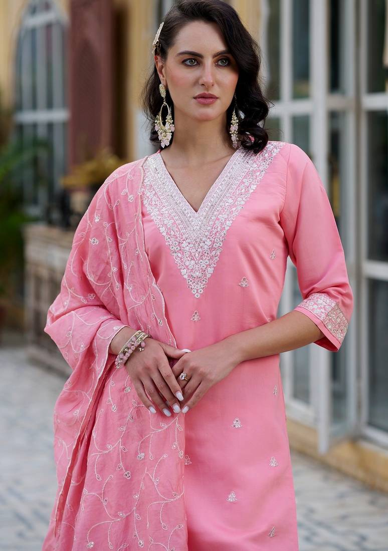| Product Name | Pink Color Silk Blend Fabric Smart Embroidered Girlie Trendy Salwar Suit | |