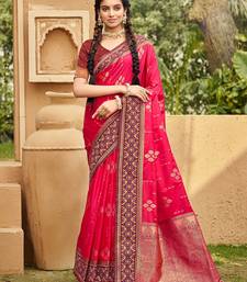 Pink color soft silk fabric woven designer ethnic ceremonial saree