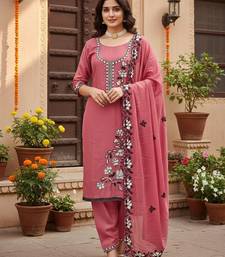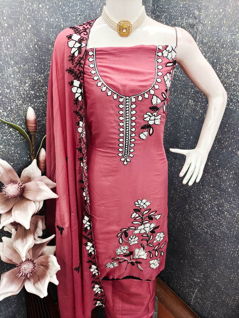 Pink embroidered georgette salwar kameez for festive wear unstitched