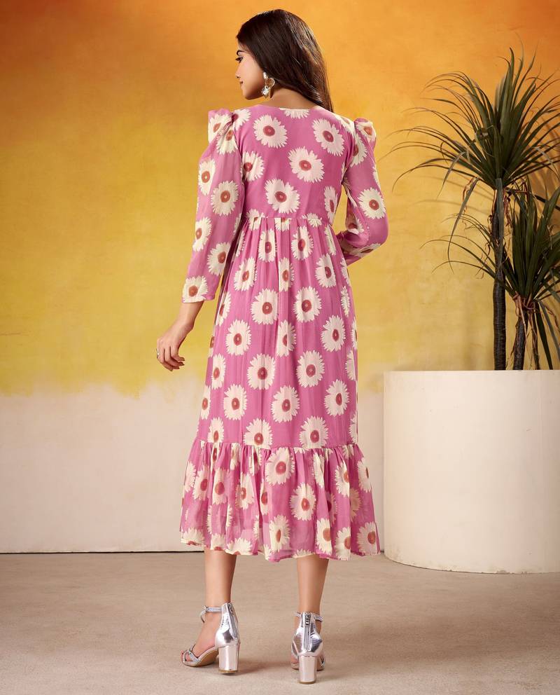 | Product Name | Pink Color Weightless Marbal Fabric Designer Floral Printed Girlie Partywear Kurti | |
