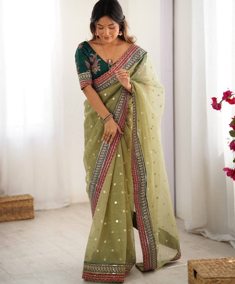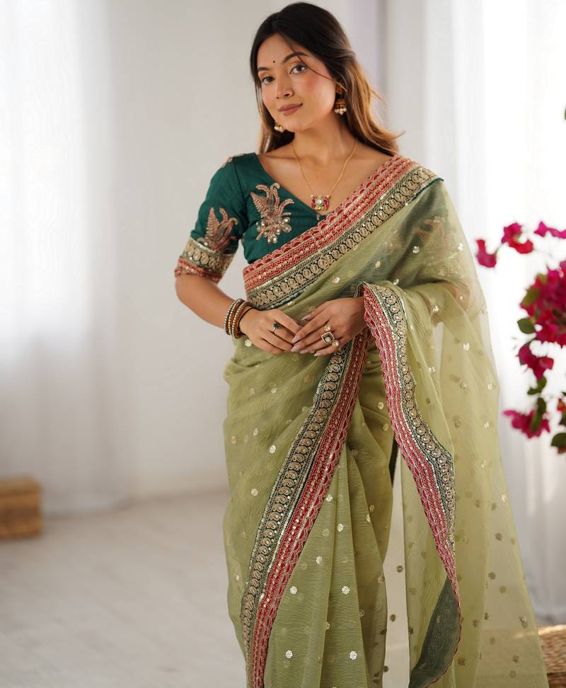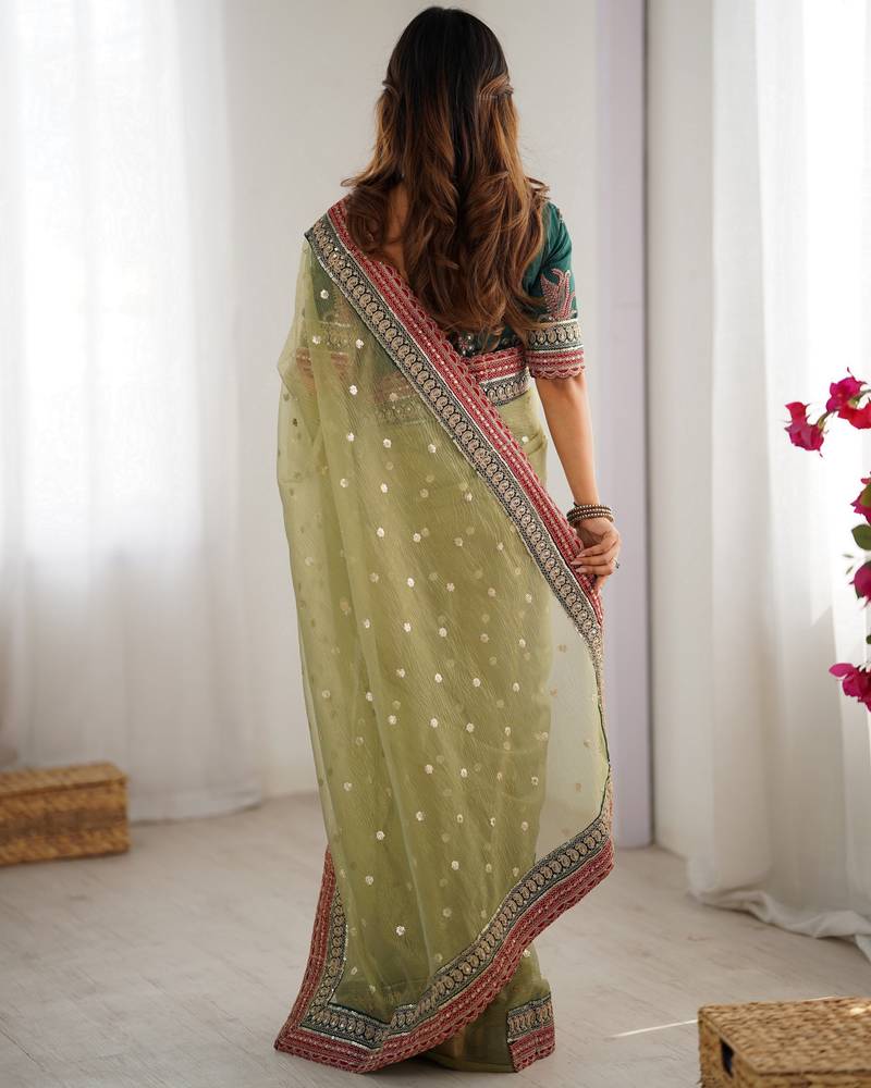 | Product Name | Pista Color Banarasi Crush Fabric Graceful Partywear Sequins Embroidered Saree | |