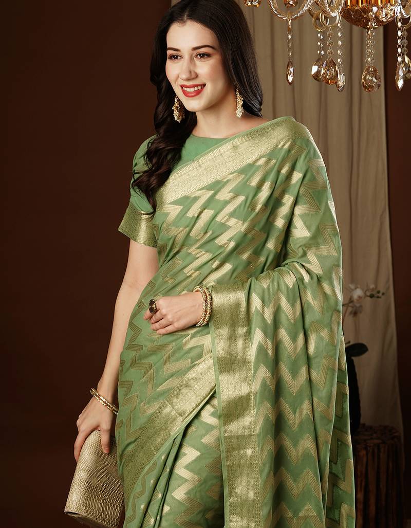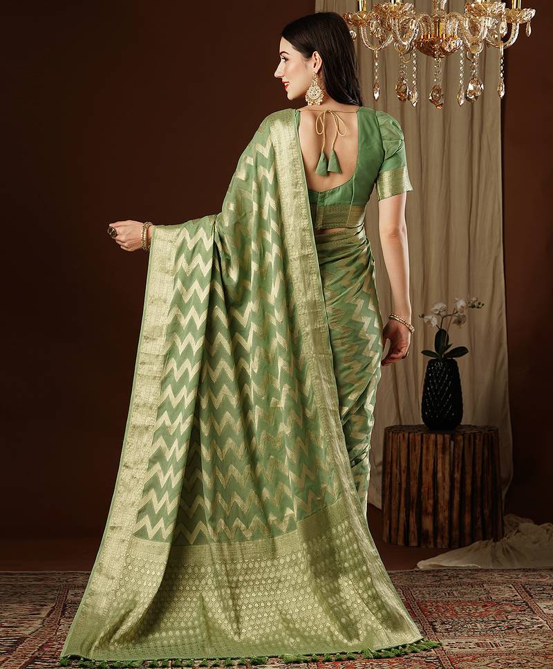 Pista color beautiful woven ethnic georgette fabric ceremonial saree