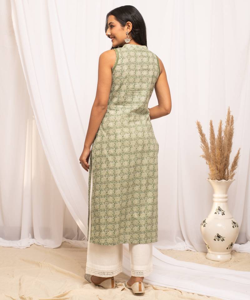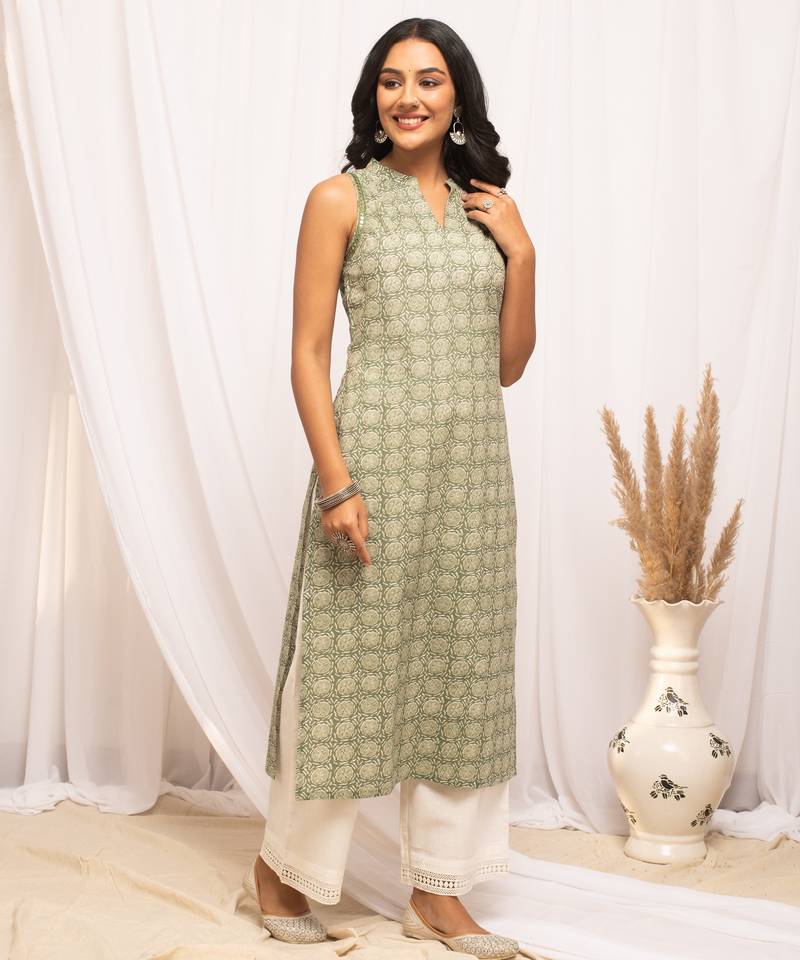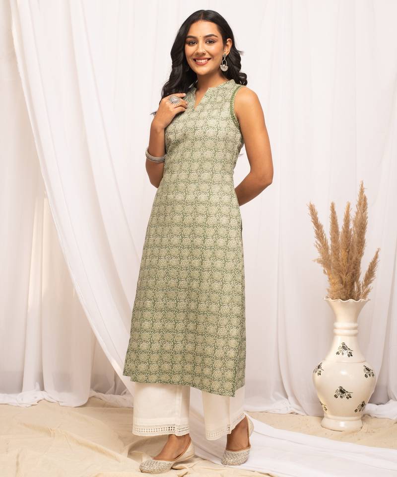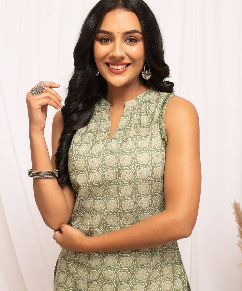 | Product Name | Pista Color Cotton Fabric Designer Printed Stylish Long Kurti | |