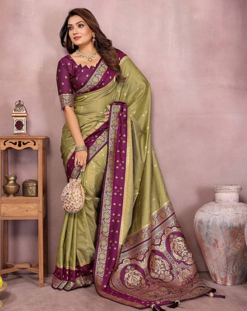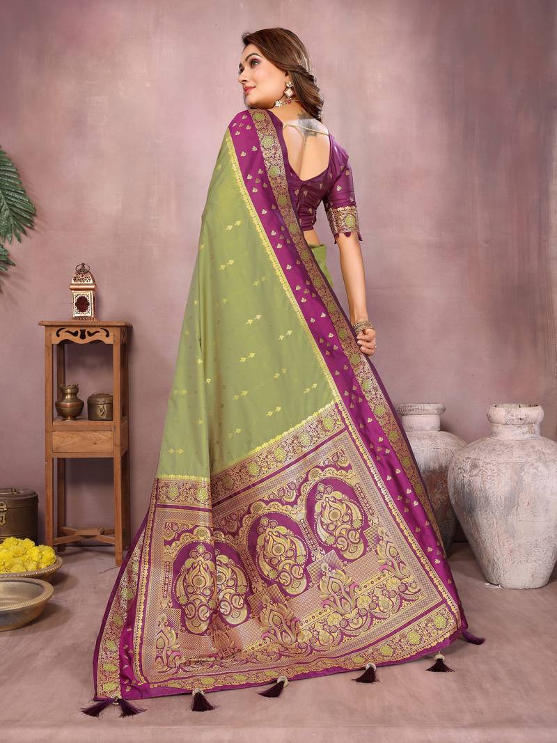 | Product Name | Pista Color Handloom Silk Blend Fabric Weaving Designer Ethnic Partywear Saree | |