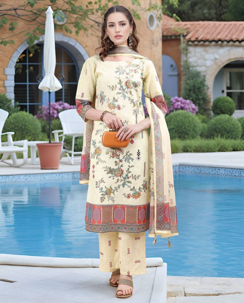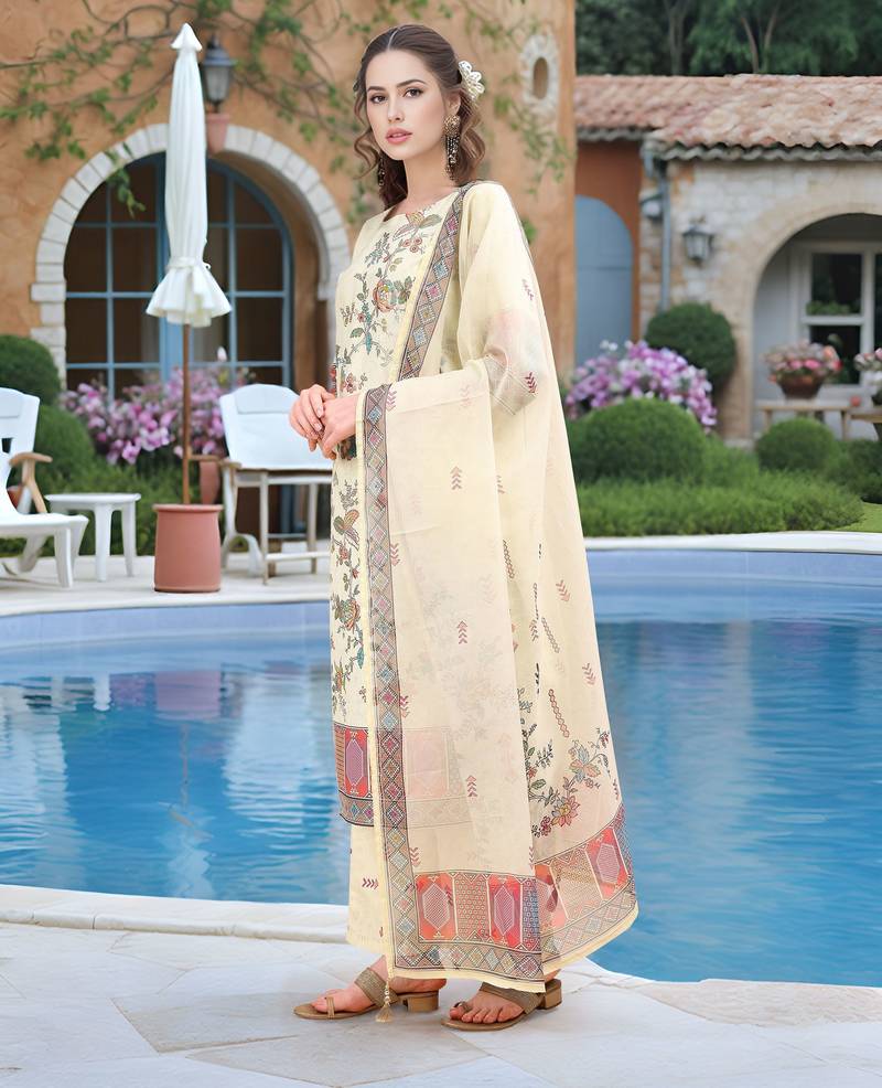 | Product Description | Attrective These Beautiful Looking Readymade Suits.These Top And Bottom Are Linen And Dupatta Are Tabby Chiffon Fabricated.Its Beautified With Disigner Digital Foil Printed. |