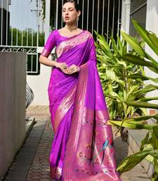 Purple color banarasi silk blend fabric designer partywear saree