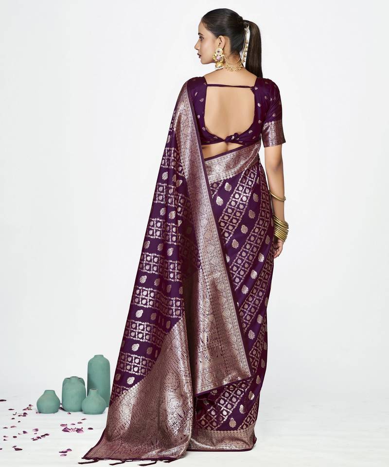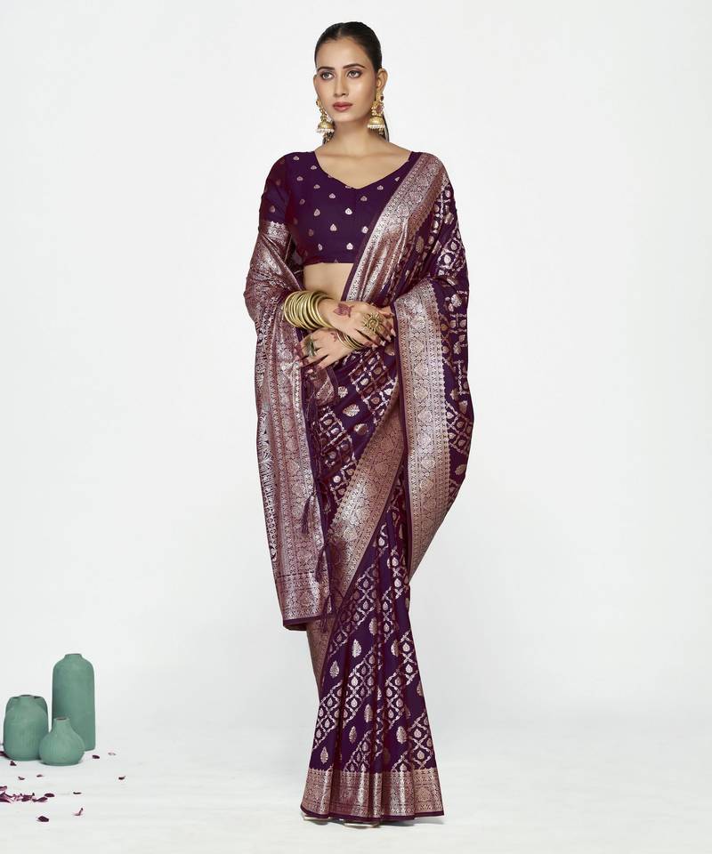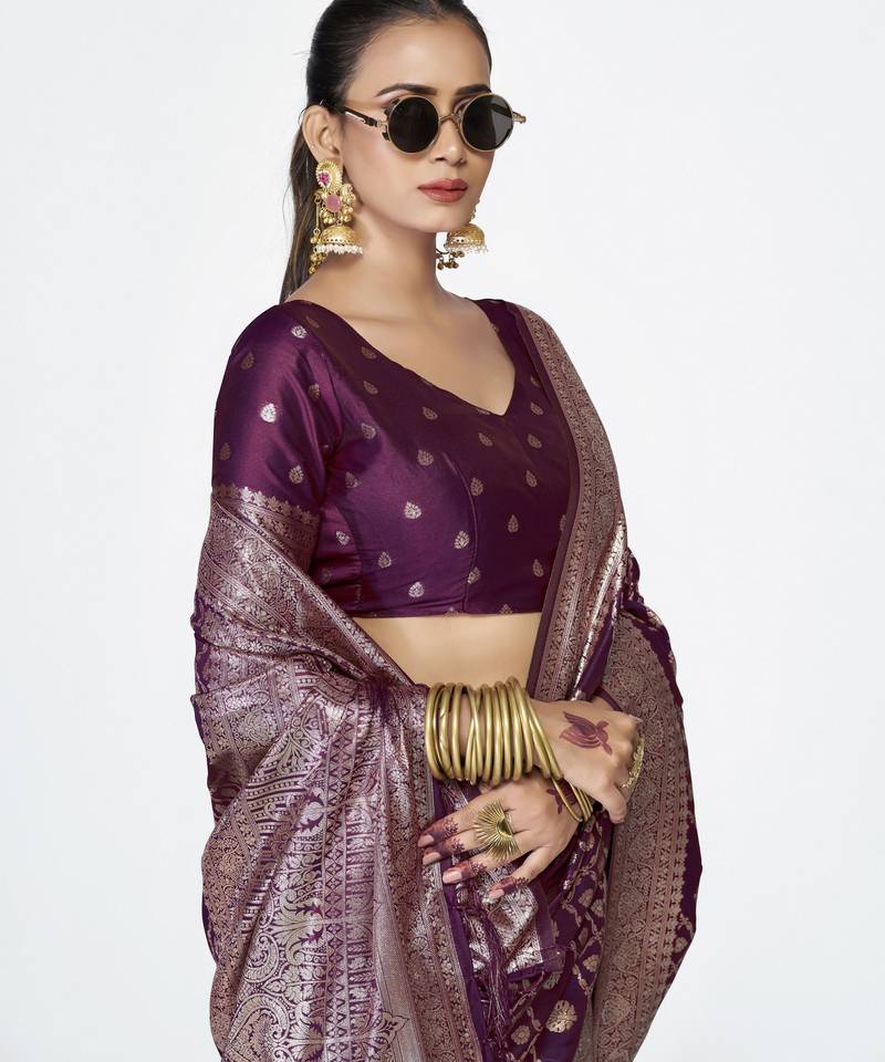 | Product Name | Purple Color Banarasi Art Silk Fabric Woven Zari Designer Saree | |