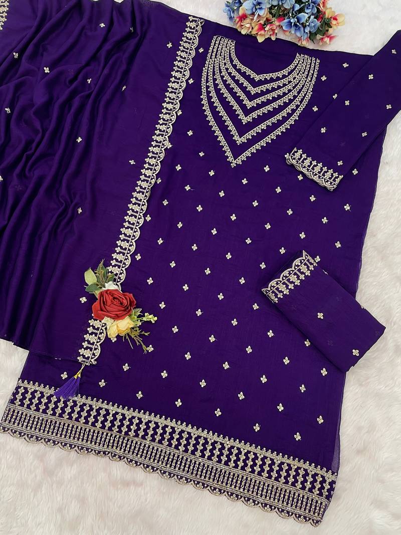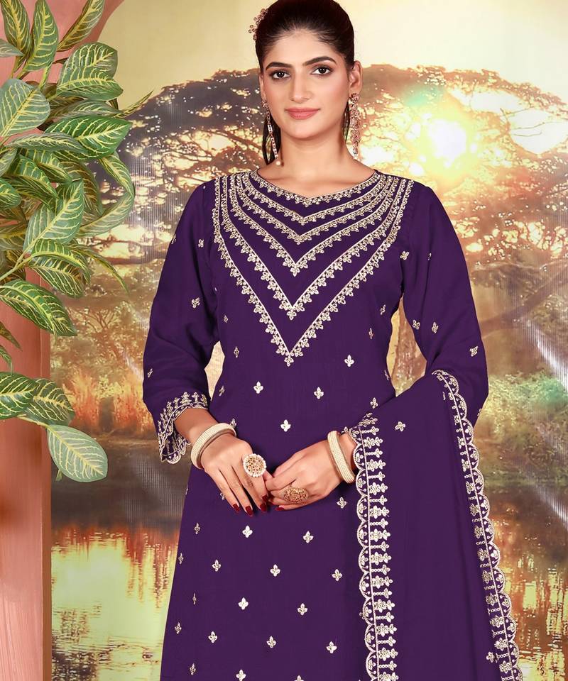 Purple color beautiful ethnic palazzo dress for designer ceremonial looks semi stitched