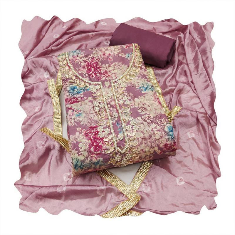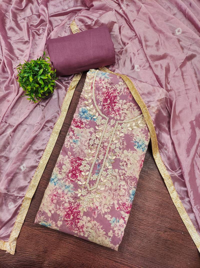Purple color beautiful printed designer modal silk salwar suit unstitched
