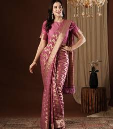 Purple color beautiful woven ethnic georgette fabric ceremonial saree