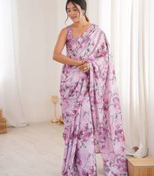 Purple color chinon fabric digital printed partywear ceremonial saree