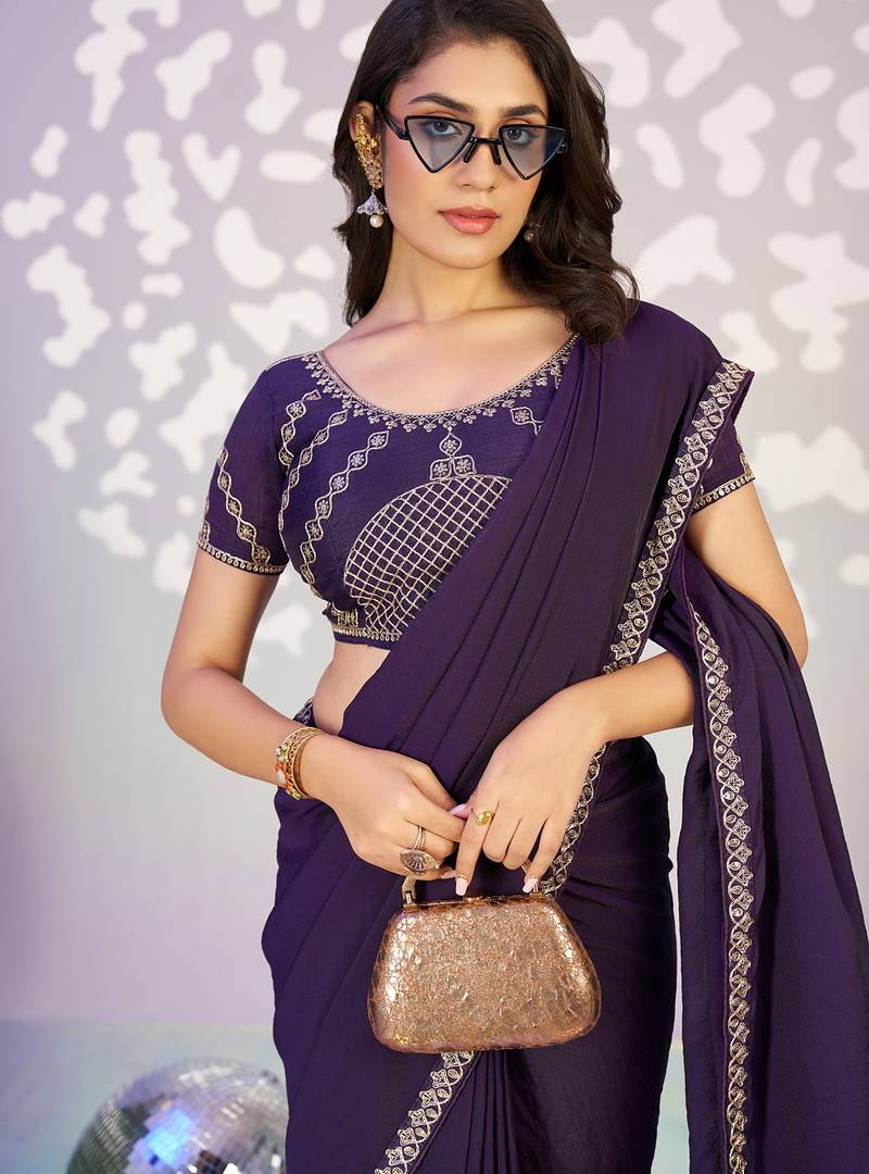 | Product Name | Purple Color Ethnic Embroidered Moss Chiffon Fabric Girlie Partywear Saree | |