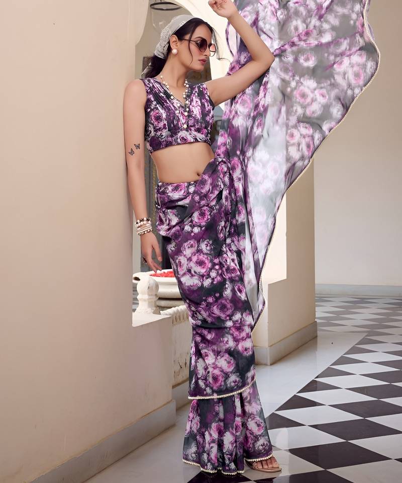 | Product Name | Purple Color Georgette Fabric Beautiful Floral Printed Saree | |